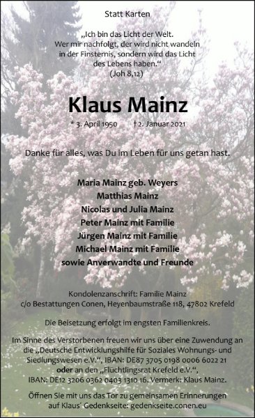 Klaus Mainzgestorben am 2. Januar 2021